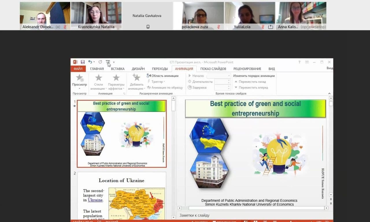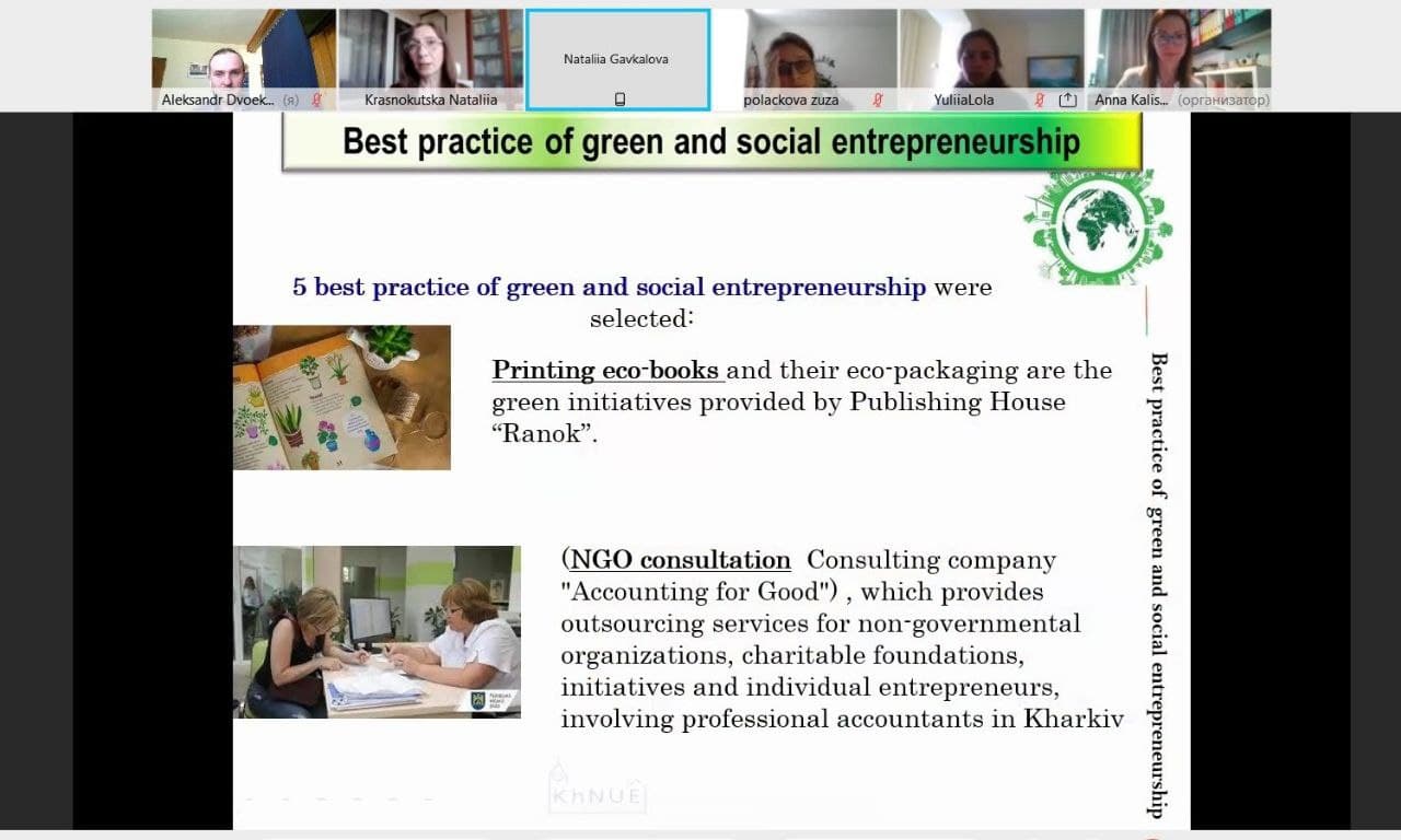 Метою зустрічі було представлення презентацій найкращих практик соціального та зеленого підприємництва та обговорення семінару «Екологічно та соціально відповідальні та інноваційні міста». Детальіше - у розділі "Проєктна діяльніть"